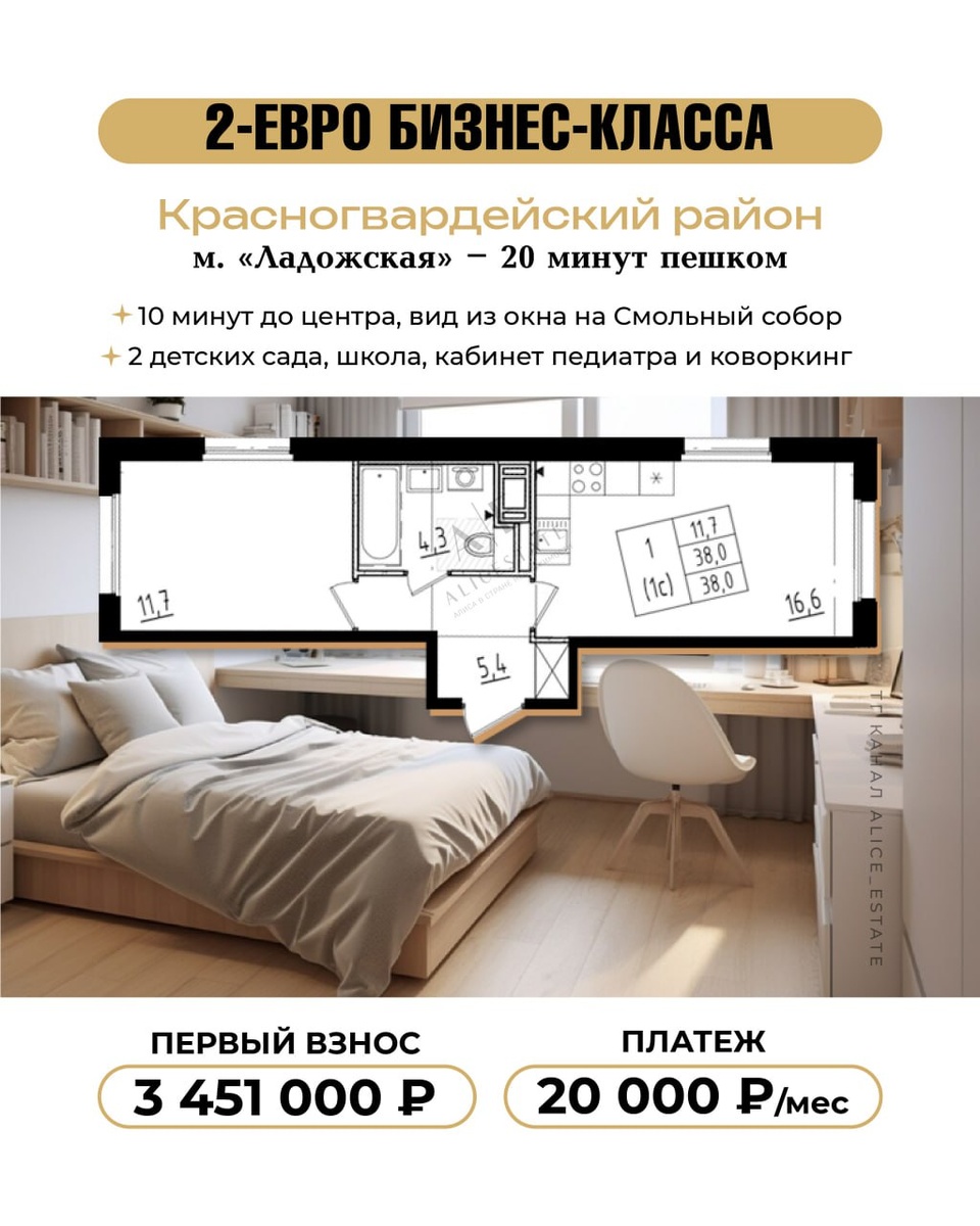 2-евро в 10 минутах от центра за 20 000 ₽/мес для всех 🔥 🔽рассрочка до 2028 года 🔽или ипотека 5% на 5 лет без детей 📍 метро «Ладожская» - 20 минут пешком Жилой комплекс бизнес-класса в пешей доступности до центра. Локация, которая стабильно востребована для жизни и аренды. В парадных выполнена дизайнерская отделка и установлены колясочные, а для жителей предусмотрены индивидуальные кладовые. 🔻2 детсада, школа и кабинет педиатра 🔻коворкинг и коммерческие помещения 🔻система «умный дом», подземный паркинг ↗️ Ставьте ➕, для бесплатной консультации и подбора квартир с доступными условиями 💙