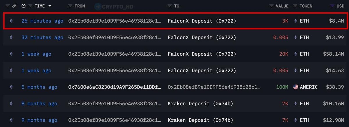 👀 Участник ICO Ethereum внес 3000 ETH ($8,4m) на FalconX. За последние 7 дней этот кит продал уже 23,000 ETH ($66,53m).