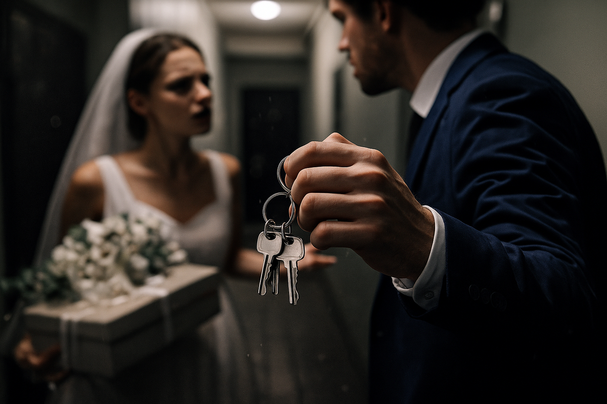 Сразу после свадьбы мы поехали в квартиру. Пока я разбирала наши подарки, муж тихо снял с моего брелка две связки ключей. В подъезде вспыхнула первая ссора. Тот день мы вернулись из загса к вечеру, уставшие и радостные. Белое платье уже лежало в чехле на стуле. Стол блестел бокалами с цифрой 14, датой нашей росписи. По полкам я раскладывала новые тарелки, складывала конверты в отдельную коробку. Супруг ходил по комнате, собирал пакеты, переставлял чемоданы, делал вид, что просто помогает. Связка с моими ключами лежала на тумбочке у двери, рядом стояла его тёмная спортивная сумка. Атмосфера казалась спокойной, впереди рисовалась тихая семейная жизнь. Каждый шаг казался правильным, будто всё стало на места. У подъезда я потянулась за ключами и сразу заметила, что брелок стал легче. Рука машинально пересчитала зубчики, сердечко из металла будто звякнуло тревожнее. Исчезли ключи от моей старой съёмной квартиры и от родительского дома. Супруг стоял рядом с букетом в руках и слегка улыбался