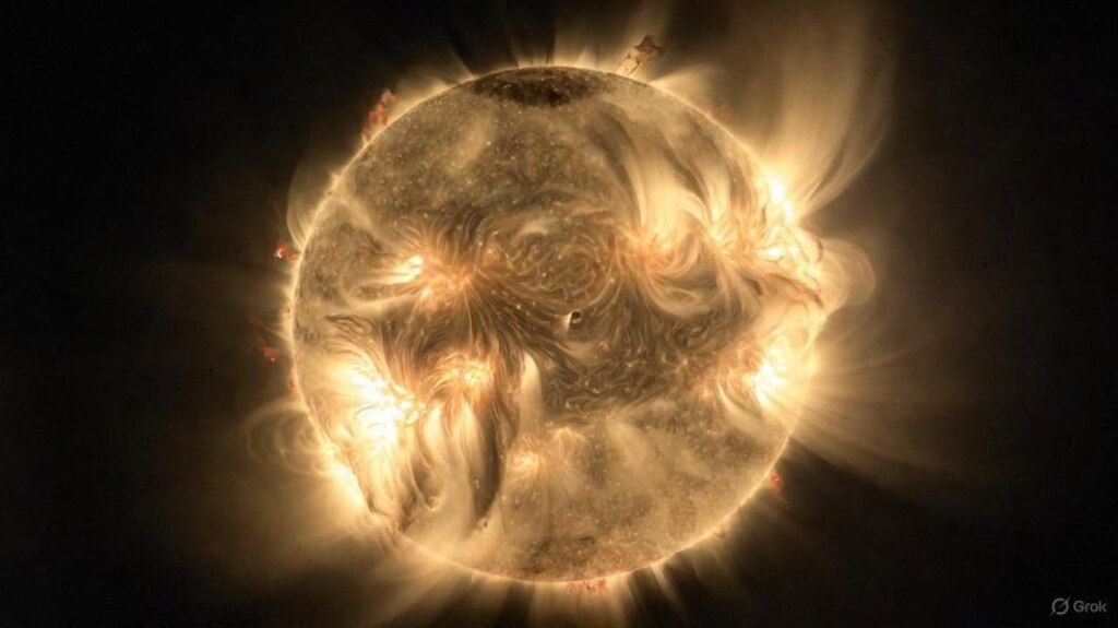 ☀ На юго-восточном краю Солнца сформировался огромный комплекс активных областей — группы 4294, 4296 и 4298. Утром общая площадь комплекса превысила 2200 солнечных единиц, что уже само по себе впечатляет. Центральная группа 4294 занимает около 1450 единиц, что стало вторым по величине показателем за последние десять лет после группы 3664, зарегистрированной в мае 2024 года. Интересно, что несмотря на такие масштабные размеры, комплекс ведёт себя необычно спокойно: в рентгеновском диапазоне практически отсутствуют вспышки, а вчерашняя мощная X-вспышка произошла в другой области Солнца. Лаборатория солнечной астрономии ИКИ и ИСЗФ называет этот комплекс «чёрным лебедем» — это означает, что ситуация может развиваться по двум сценариям: либо спокойное течение событий, либо внезапная серия мощных вспышек класса X10–X20. Однако конкретных прогнозов пока нет, и учёные продолжают внимательно наблюдать за этим уникальным явлением. Следите за обновлениями, ведь активность Солнца напрямую влияе