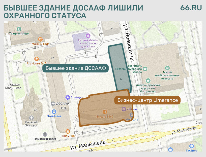 Управление государственной охраны объектов культурного наследия Свердловской области исключило здание общежития комплекса Дома обороны (улица Воеводина, 6) из перечня объектов, обладающих признаками объекта культурного наследия (ОКН). Приказ опубликовали на официальном интернет-портале правовой информации. Летом здание планировали внести в реестр ОКН, но госохрана отказалась это делать. Сейчас его могут снести, потому что оно потеряло свой охранный статус, лишившись признаков ОКН. Несмотря на это, в ближайшее время никаких работ на объекте не планируется, рассказал РБК Екатеринбург генеральный директор «TEN девелопмент» Юрий Романович. «При текущем уровне ключевой ставки никаких планов: ни по реконструкции, ни по каким-то другим действиям. Ждем улучшения экономической ситуации», — объяснил девелопер.