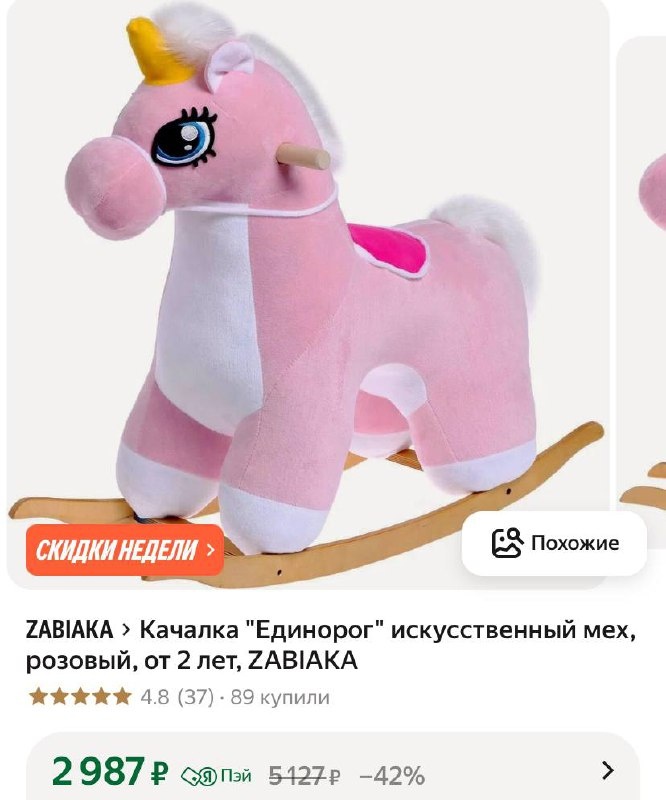 Качалка "Единорог" искусственный мех, розовый, от 2 лет, ZABIAKA