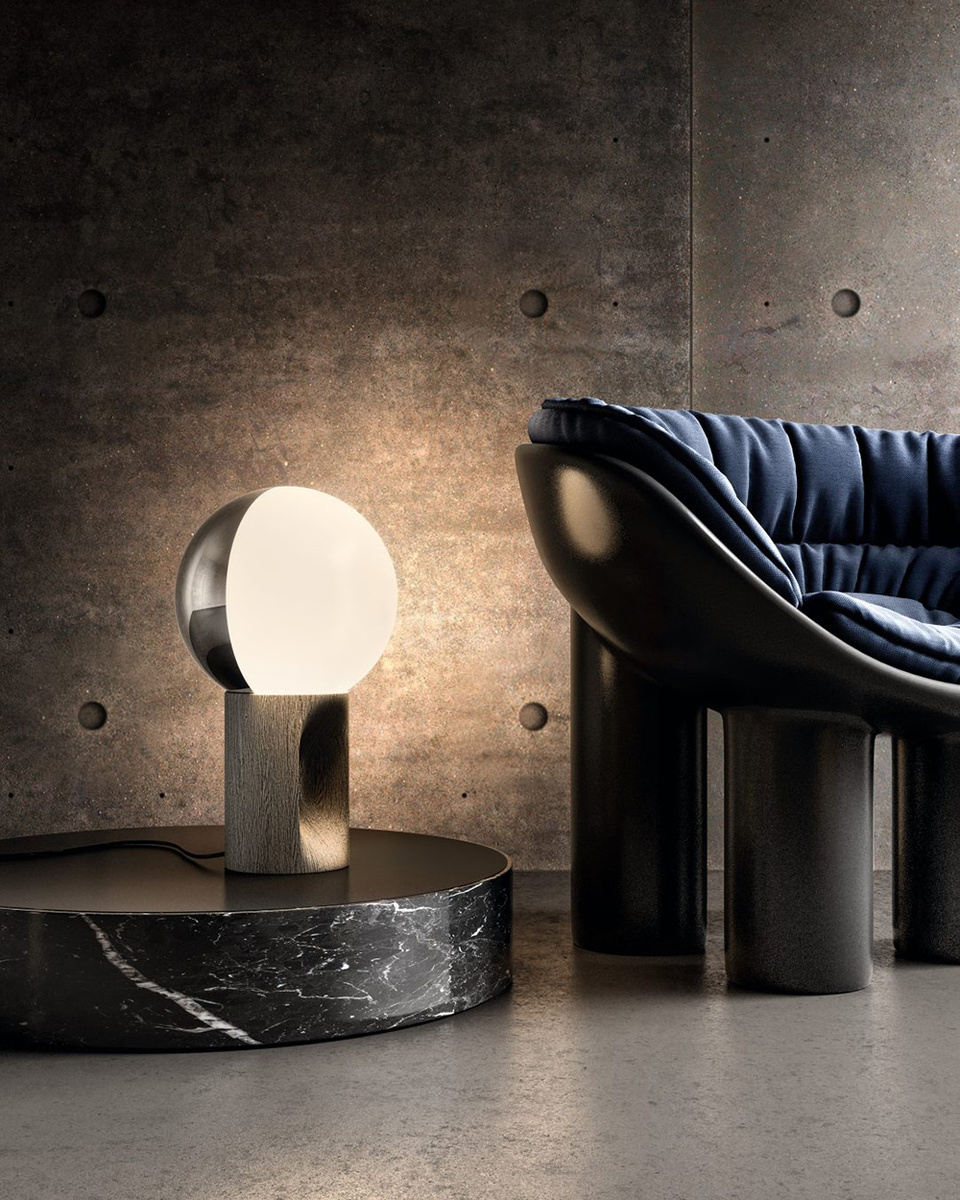 В нём всё построено на тихой выразительности: строгая вертикаль основания и будто парящая над ней стеклянная сфера, меняющая характер света одним движением руки. Материалы подобраны так, чтобы создавать ощущение тактильной глубины. Натуральное дерево или мрамор в основании задают спокойный, уверенный ритм, а стеклянный плафон мягко рассеивает свет, превращая лампу в источник атмосферного сияния. Je Suis легко меняет настроение пространства — достаточно повернуть плафон, чтобы свет стал более направленным или рассеянным. Такой светильник органично вписывается в спальню, гостиную или кабинет, добавляя интерьеру ту самую «тишину формы», которую ценят в качественном дизайне.