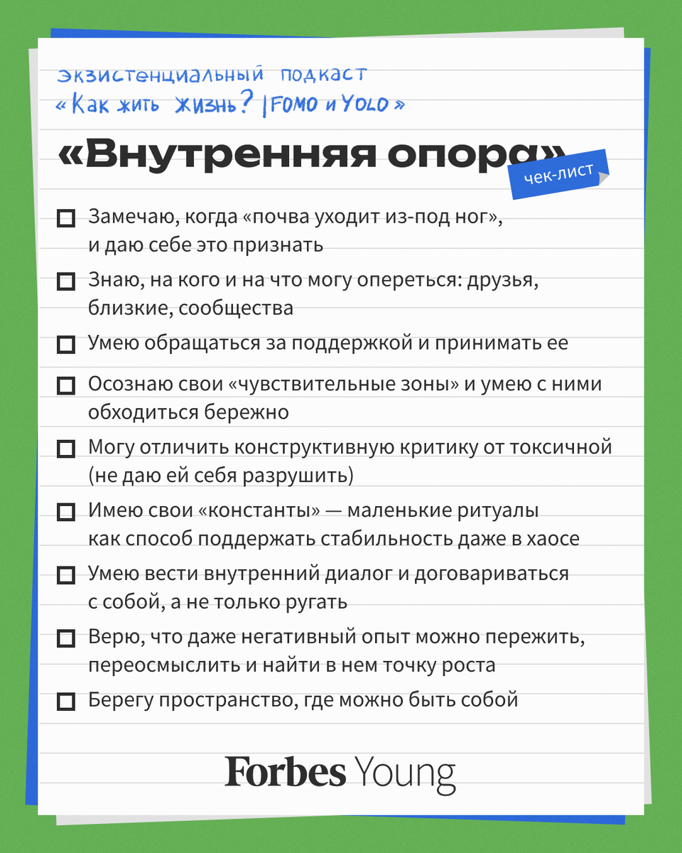 Почему в моменты кризиса одним хватает сил держаться, а других будто сдувает, как одуванчик? Как найти точку опоры внутри себя, когда мир вокруг такой нестабильный? И можно ли научиться быть устойчивым, если в детстве тебе не дали этой уверенности? «Можно и обращаясь вовне к группе поддержки, это могут быть друзья, близкие люди, не обязательно родственники. Хорошо, когда повезло родиться в какой-то счастливой и дружной семье, но не всем так везет, к сожалению. Это может быть какой-то социальный круг, где вы занимаетесь одним и тем же делом. То есть это опыт может быть как внешней поддержки, так и внутри себя, когда человек уже способен, что называется, к рефлексии, к такому самопониманию того, что же внутри меня происходит, как устроены эти душевные движения, на что я могу опираться», — объясняет эксперт выпуска, семейный психолог, супервизор, IFS-практик, член Общества семейных консультантов и психотерапевтов Светлана Тимофеева. В восьмом выпуске третьего сезона подкаста «Как жить