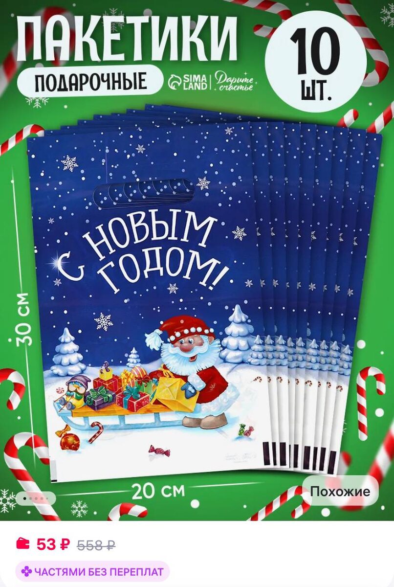 Сима-Ленд & Дарите Счастье Новогодний подарочный набор пакетов, 10 шт, полиэтиленовых https://www.wildberries.ru/catalog/579730760/detail.aspx?size=793010028 ✅ Подписаться 🔣 Бот с промокодами