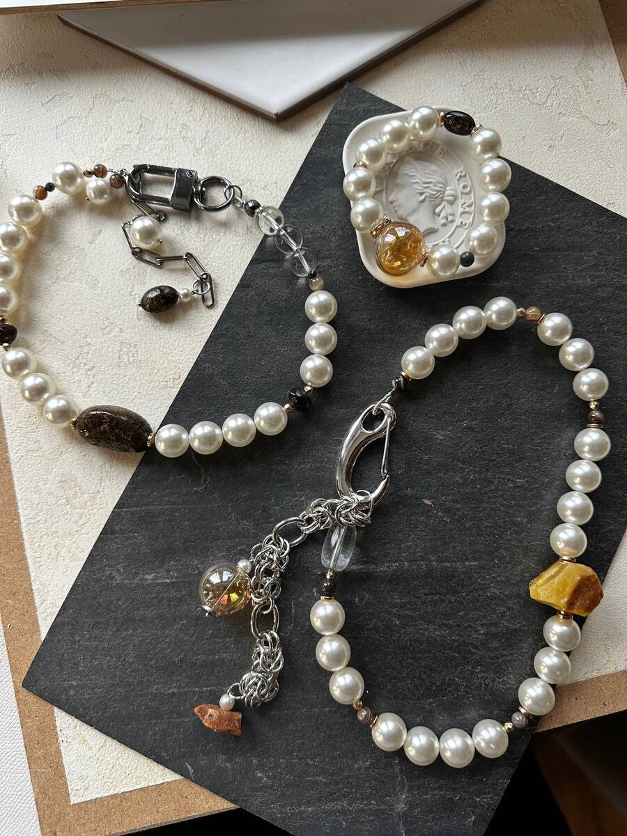 В офис приехала новая Янтарная коллекция. Меня больше всего восхищает янтарь Черный лак. Этот камень почти не обрабатывался в Советском союзе, все изделия с янтарем были светлые, классического медового оттенка. Черный лак имеет особенную глубину и его Истрия в украшениях началась еще до нашей эры. Колье Белый янтарь, жемчуг, агат Ботсвана, 12900₽ (предзаказ 11700₽ еще 3 дня) Колье янтарь Черный Лак 11700₽ (Предзаказ 10500₽ еще 3 дня)