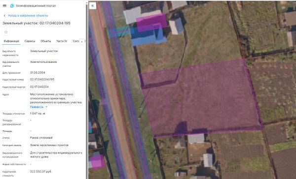 Название: Земельный участок с кадастровым номером: 02:17:040204:195, категория земель: Земли населенных пунктов, площадью 1647 кв.м