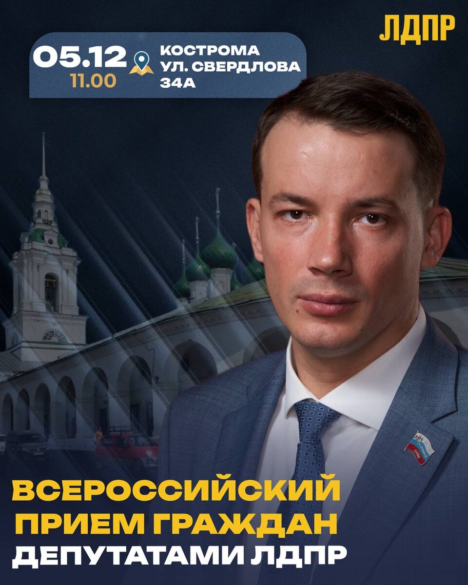 Приглашаем на Всероссийский прием граждан депутатами ЛДПР❗ В Костроме прием граждан пройдет 5 декабря. Его проведет руководитель ЛДПР в регионе, депутат Костромской областной Думы Руслан Федоров. «Всероссийский прием граждан ЛДПР – это не пустая трата времени и не формальный отчет для галочки! Это – мощный инструмент адресной помощи, разработанный специально для того, чтобы помочь каждому, кто столкнулся с несправедливостью! В поиске решений проблемы задействованы все уровни власти, вплоть до депутатов Государственной Думы и сенаторов, представляющих Костромскую область», - подчеркнул координатор партии в регионе. 📍 Место встречи: штаб-квартира Костромского регионального отделения ЛДПР (Кострома, улица Свердлова, 34А) ✅ Дата и время: пятница, 5 декабря, 11.00 Пожалуйста, предварительно запишитесь на прием. Это можно сделать: 📝 по телефону: 51-50-90 ✉ дистанционно по эл.почте ldpr44@ldpr44.ru и во всех соцсетях регионального отделения. ЛДПР Кострома🕊