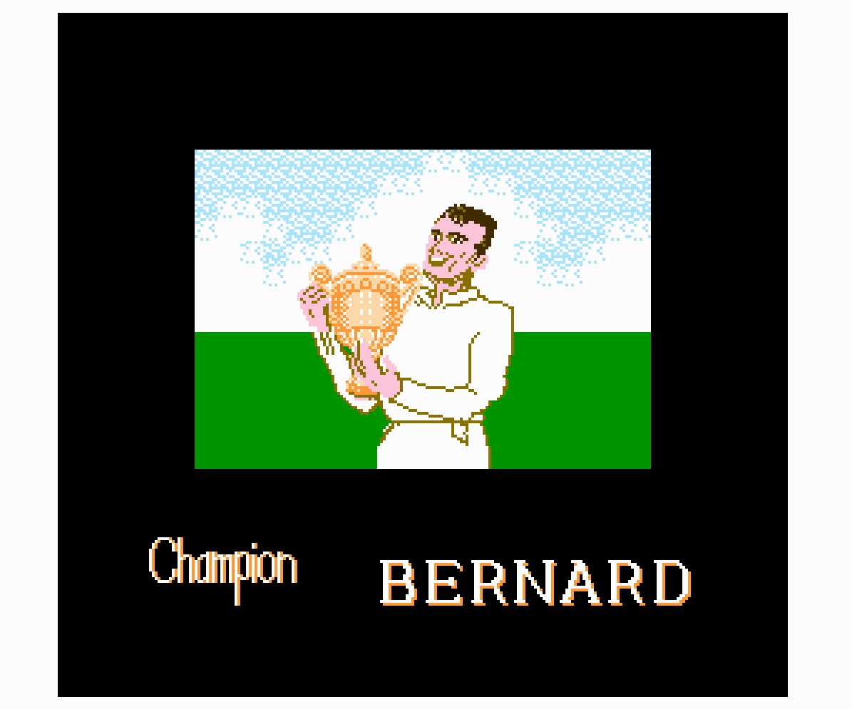 «Racket Attack» – Это большой теннис с возможностью играть вдвоём, выбирать пол игрока, одного из шестнадцати теннисистов, с тремя уровнями сложности и системой паролей. Взялся за европейский релиз, выбрал мужчину и лёгкий уровень. Но всё равно проиграл первый сет. Во-первых, не знаком с правилами, во-вторых – управление кривое. С помощью магии эмулятора начало получаться. Заметил, что подавать проще, чем отбивать – мяч в пространстве чувствуется очень плохо. Пять сетов (либо три в сухую) и переход к следующему сопернику. А потом я научился гасить противников, и игра пошла быстрее. Семь встреч и кубок наш! Но до победы прошло пять дней. Настолько затянута и уныла игра. Не хватает одиночной игры или обучения. Но любителям спорта, думаю, зайдёт.