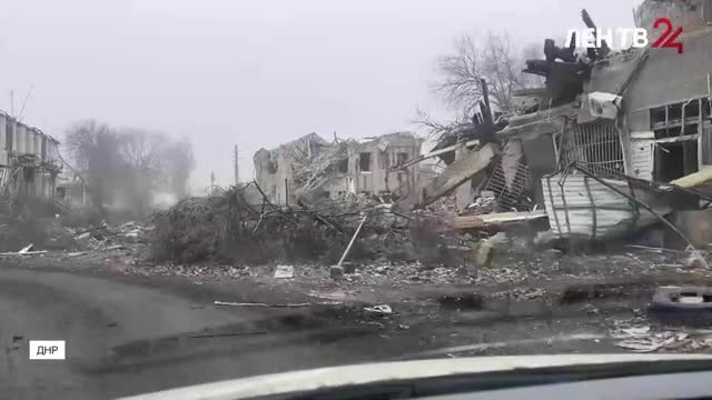 Здесь два года шли ожесточенные кровопролитные бои. Трасса разбита военной техникой. Последний населенный пункт в старых границах Донецкой Республики. Окраины поселка Никольское — безжизненная зона. Жизнь теплится лишь в монастыре, который также пострадал от обстрелов. А дальше — готовые декорации для фильма-катастрофы.