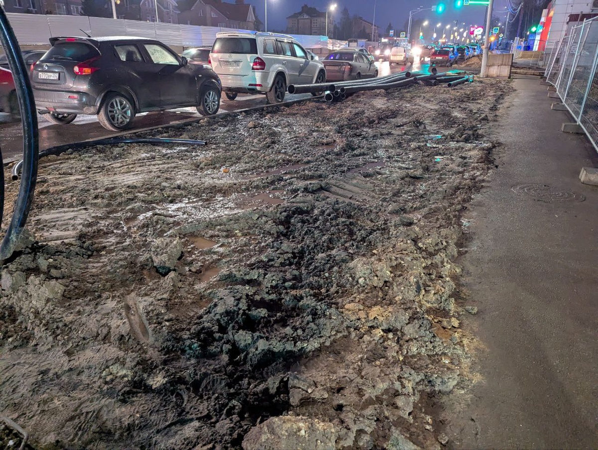 Сегодня с утра, в первый день работы дублера, улицу Родионова сковали пробки - причем как в направлении исторического центра, так и в сторону Верхних Печер. Из "благ цивилизации" между улицей Ковровской и домом №11 по Родионова - пока только работающие светофоры и собственно асфальт на проезжей части. Тротуары вдоль дублера сделать не успели.