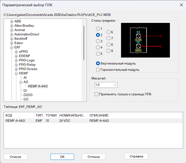 Модули применяются в качестве удаленных модулей расширения для ПЛК PRO-Logic, устройств ввода/вывода сигналов для панелей оператора PRO-Screen, устройств ввода/вывода сигналов при подключении к SCADA-системам и другому ПО верхнего уровня, устройств ввода/вывода сигналов для совместной работы с любым оборудованием, поддерживающим интерфейсы Ethernet или RS-485 и протоколы Modbus TCP/RTU/ASCII. В базе данных параметрических ПЛК модуль состоит из семнадцати точек ввода/вывода. При размещении для модуля можно выбрать стиль графики, вертикальную или горизонтальную ориентацию. При размещении модуль можно разделить на 5 частей. Размещенному модулю назначается поз. обозначение и другие характеристики. В Базу данных каталога добавлены каталожные данные. Отчет «Спецификация»: Модуль на чертеже компоновки. Я 🩷AutoCAD Electrical !