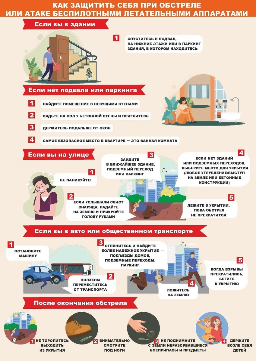 Предлагаем ознакомиться с памяткой по защите при обстреле или атаке беспилотными летательными аппаратами👇