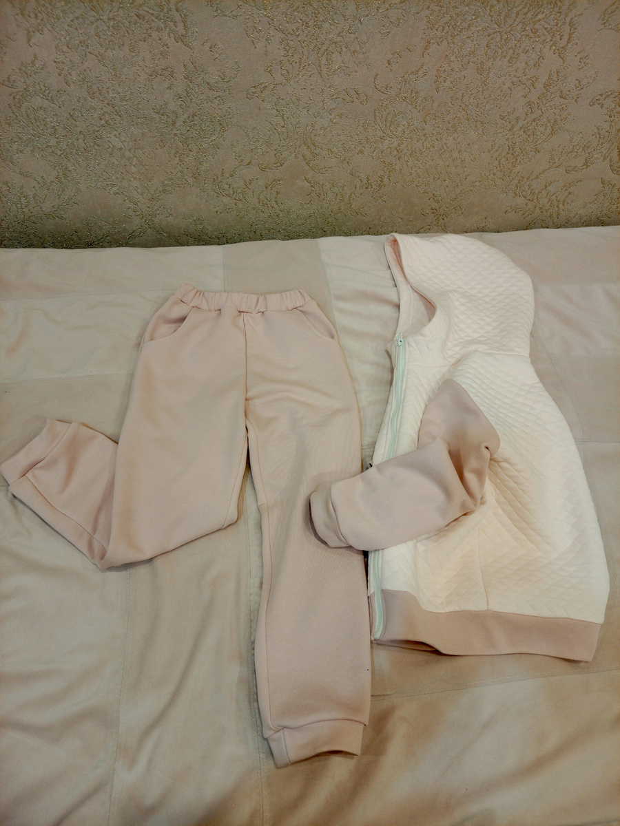Был у меня маленький отрез капитония, настолько маленький, что его даже не хватало на детскую кофту. Поэтому я скомбинировала его с футером трехнитка диагональ и получился хорошенький костюмчик. Кофта получилась очень даже свободная и я решила использовать эту же выкройку для пошива ветровки на прохладную и дождливую погоду летом, какая очень даже часто случается в нашем регионе. Сшила две идентичные кофты- одну из начеса, другую из дюспо, соединила их между собой, вшила молнию и получилась хорошенькая ветровка. Но в отличии от кофты из капитония, которая сидит очень даже свободно, ветровочка села плотно без запаса на вырост и желаемого дополнительного объёма, который должен быть у верхней одежды. Вывод- для ветровки лучше брать выкройку ветровки. Вот собственно и сама ветровка.