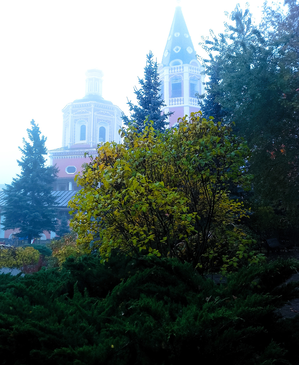 Осенью по Саратовской области. Саратов. Туманный сквер у Свято-Троицкого собора.