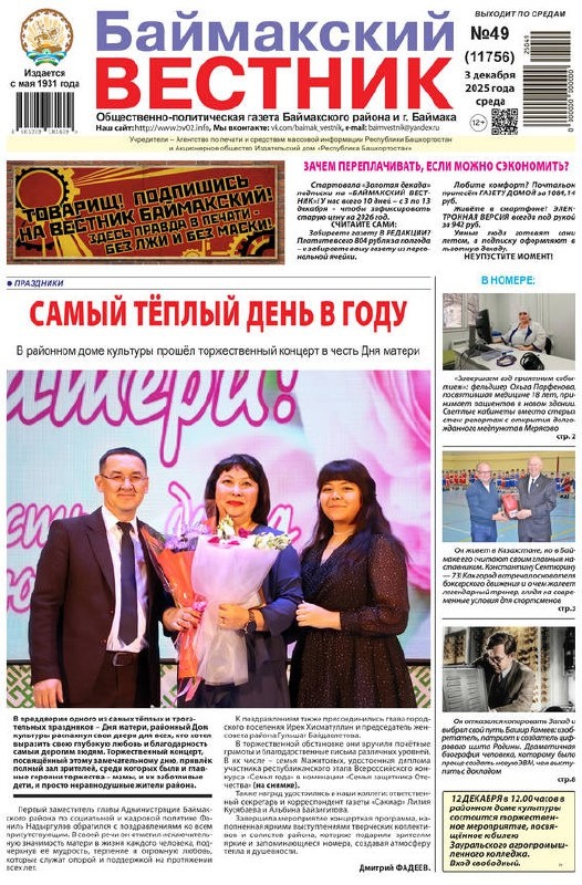 Читайте в завтрашнем номере "БВ" ► «Ты не один: даже в тишине есть те, кто верит в твой успех». Почему 23-летний Павел, несмотря на тяжелый недуг, считает жизнь прекрасной и работает до полуночи? Секреты несгибаемого оптимизма и активной жизненной позиции — в нашем интервью ► «Мой мир ограничен видом из окна, но я не ропщу». Искренняя история женщины, которая уже 30 лет видит город только через стекло, но находит поводы для радости ► «Зарифа», «Гульназира», «Сплетницы» — эти номера в исполнении Гульнур Аюповой стали классикой. Вместе с мужем, виртуозом Ридиком Фасхитдиновым, они создавали магию на сцене более 20 лет. Памяти дуэта, который олицетворял душу народного танца ► Кто такие волонтеры? Это ваши соседи, друзья и коллеги, которые находят время, чтобы быть полезными. В честь праздника рассказываем о добровольцах Баймака, которые стали надежным тылом и примером настоящей гражданской ответственности
