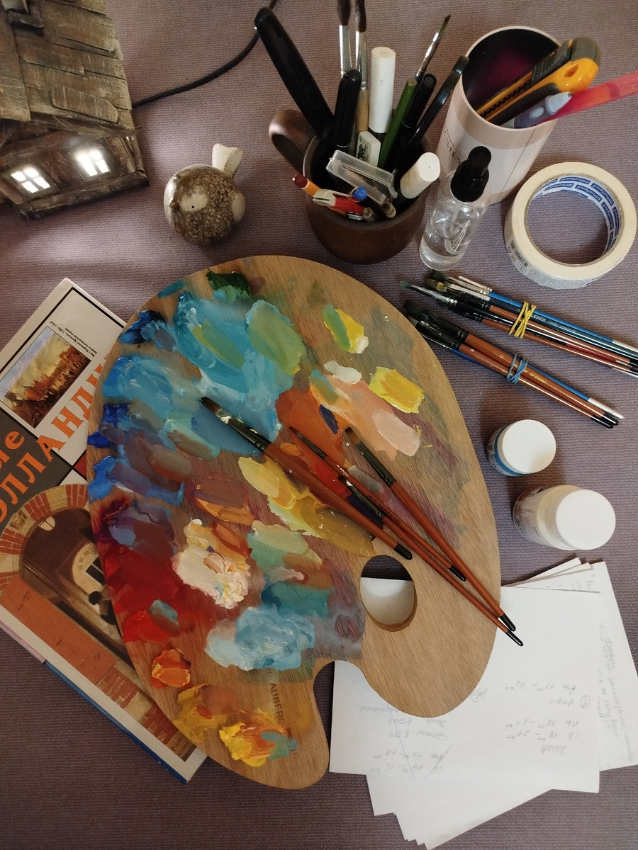 Именно с нее проще начинать осваивать технику живописи, причем как у детей, так и у взрослых. Кстати, большинство ВУЗов анонсируют именно гуашь, как основной материал на вступительных экзаменах и творческих просмотрах. Если возьмёте первую попавшуюся гуашь, скорее всего будет разочарование и потраченные впустую деньги. Поэтому, давайте разбираться! Разговор пойдёт о классификации наших брендов. «Плакатная» гуашь делается из каолина - глины белого цвета. Она плотная, обладает яркими цветами, но достаточно грубой передачей цветовых оттенков. Оставим эту гуашь в покое, нам нужна⤵️ Художественная гуашь. Отличается высоким качеством пигментов, делает плавные цветовые переходы и имеет более хорошие цветовые характеристики по сравнению с плакатной гуашью. Содержит: 🤩белила (чаще всего титановые), 🤩тонко растёртый пигмент, связующее вещество (чаще всего гуммиарабик) и 🤩добавки, (например, фруктовая камедь, декстрин или глицерин). Форма выпуска: Выпускаются в двух формах: 🫙ба