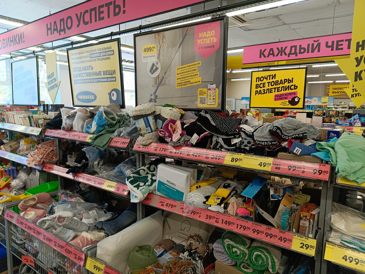 На кухне я вообще потерялся. Формы для кексов, кастрюли, сушилки для посуды, наборы кухонных принадлежностей… Всё блестит, сверкает, манит. Если бы у меня была жена-кулинар, я бы тут всё скупил. А так… ограничусь многофункциональными кухонными ножницами за 150 рублей. Никогда не знаешь, когда пригодятся.