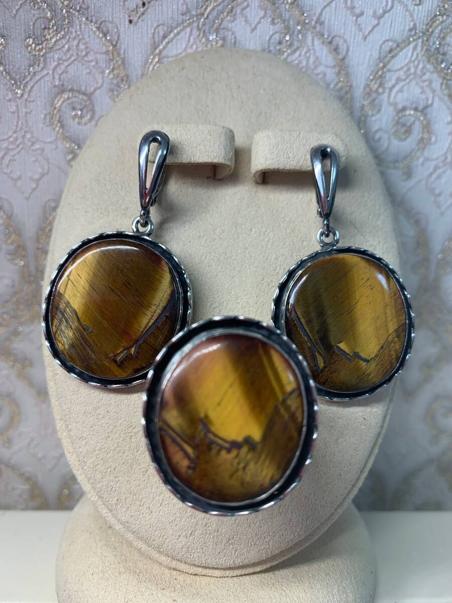 🔥СЕРЕБРО 🔥ТИГРОВЫЙ ГЛАЗ🔥 🔥ВЕС ОДНОЙ СЕРЬГИ 7,92 🔥ДЛИНА 46 мм 🔥РАЗМЕР КОЛЬЦА 20,5 🔥ЦЕНА 5800🔥