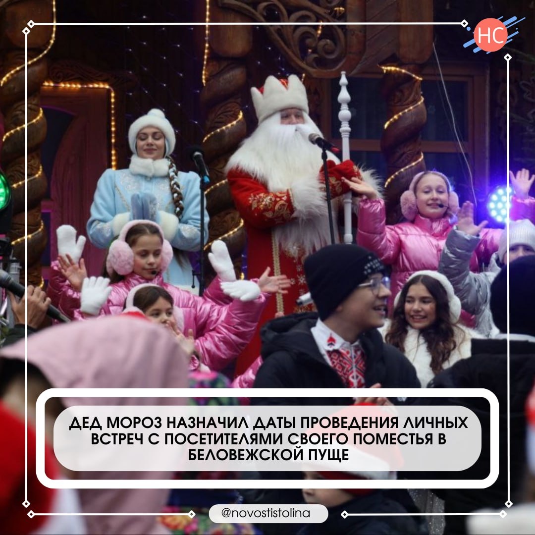🔹В нацпарке проинформировали: — Лично встретиться с Дедушкой Морозом можно в следующие даты: 6, 13, 14, 20, 21, 24–30 декабря 2025 года и 1–11 января, а также 17 января 2026 года. 🔹В отделе туризма, маркетинга и рекламы рассказали о стоимости аудиенции: — Стоимость услуги — 10 рублей с одного человека за 10 минут общения. Для детей дошкольного возраста общение с Дедом Морозом осуществляется исключительно в сопровождении родителя (совершеннолетнего сопровождающего лица). 🔹Одновременно с Дедом Морозом может общаться не более 10 человек. ➡️➡️ Подробно на сайте polese. by