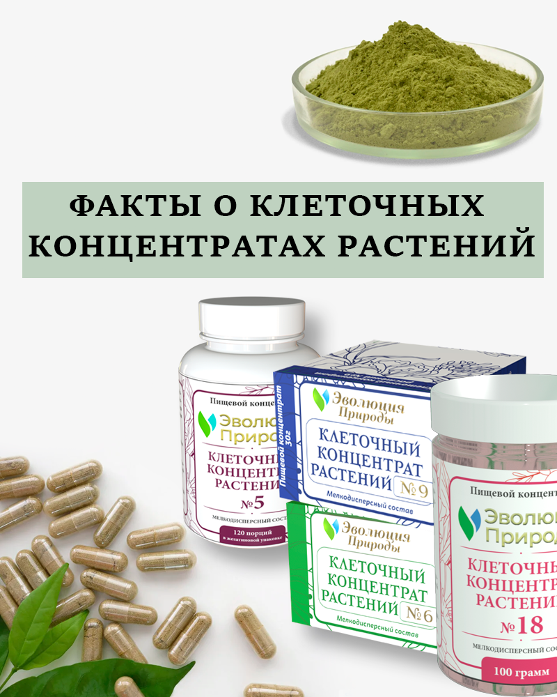 Для профилактики и лечения различных заболеваний, наряду с широким спектром синтетических лекарственных средств, применяются лекарственные средства растительного происхождения. В НПО "Эволюция Природы" разработаны клеточные концентраты растений для различных систем организма. Они употребляются в виде мелкодисперсного порошка (есть капсульная форма) и состоят из протопласта, содержащий внутриклеточный растительный состав лекарственных трав расщепленный до 2 микрон. Это позволяет значительно увеличить биодоступность сырья, сохранить все важные компоненты и вещества, увеличить срок службы препарата и уменьшить различные побочные и аллергические эффекты. Клеточные концентраты растений имеют ряд преимуществ: - Экологичность: Растительное сырье добывается в экологически чистых районах, без использования химикатов и гормонов роста. - Безопасность: Клеточные концентраты растений имеют минимальный риск побочных эффектов, что делает их привлекательными для пожилых людей и детей. - Комплексное