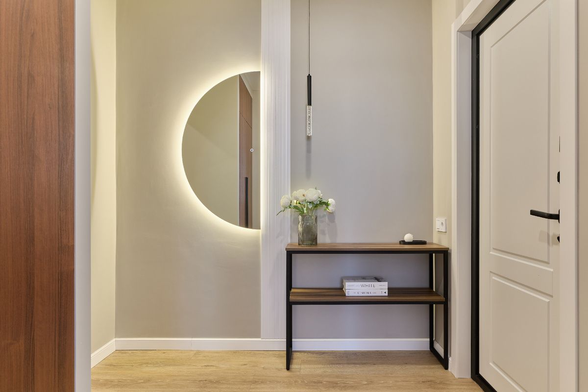 Прихожая, несмотря на скромные размеры, уже не обходится без электроники. Минимум — розетка над консолью для подзарядки телефона. Часто требуется точка у пола для сушилки обуви, а если вы — счастливый обладатель робота-пылесоса или размещаете в прихожей Wi-Fi-роутер, то стоит предусмотреть и для них отдельные места.