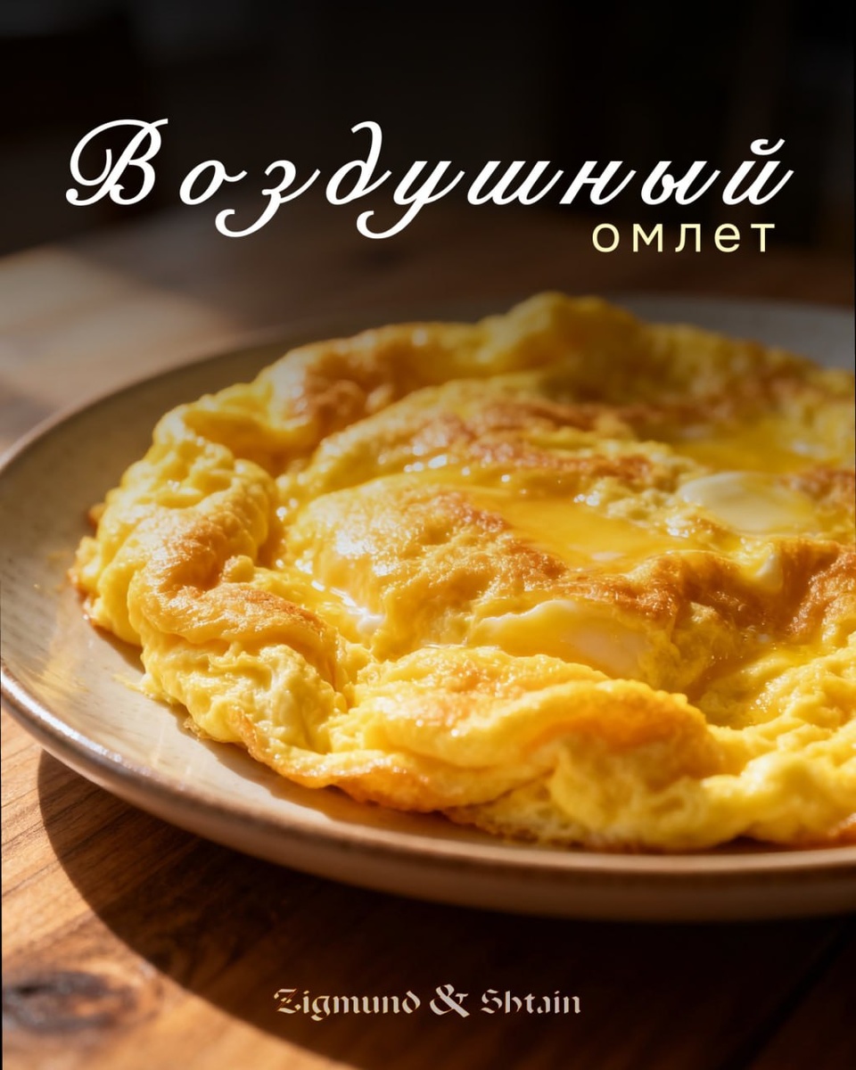 Нежный и лёгкий омлет с пышной текстурой. Ингредиенты: яйца — 4 шт. соль сливочное масло — 10 г Приготовление: Отделить белки от желтков. Желтки взбить с солью. Белки взбить до устойчивых пиков. Разогреть сковороду с маслом. Выложить желтки, сверху белки. Готовить под крышкой на умеренном огне 3–4 минуты. На плите Zigmund & Shtain омлет получается особенно воздушным благодаря стабильному нагреву. Лёгкий завтрак для неспешного утра. #Завтрак
