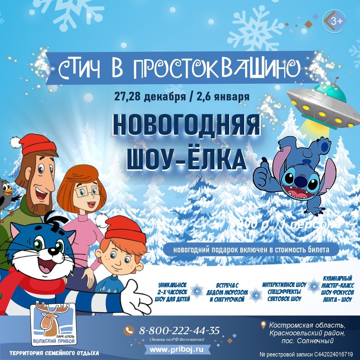 Невероятная новогодняя 🎄🌟 Шоу-Ёлка «Стич в Простоквашино!» 👽 Погрузитесь в захватывающие ⚡🔥 Приключения, Мастер-классы 🍕🥧 невероятных лакомств и завораживающие 🤯 Шоу-фокусов и Лента-шоу. 🎈💨🎊 Море эмоций 😍😱 и восторга гарантированы! 🌐Подробности https://priboj.ru/events/christmas2026/ 📞 8-800-222-44-35 (Звонки по РФ бесплатно) Чат с администраторами – vk.me/priboj44 Категория 3+