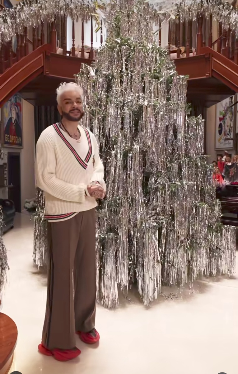 А вот совсем свежее украшение, которое Киркоров продемонстрировал в декабре 2024-го, вызвало неоднозначные реакции. Опять серебро? Ну, да, опять. Но в этом году дождик был ещё плотнее. Настолько плотный, что саму ёлку становилось практически не видно.