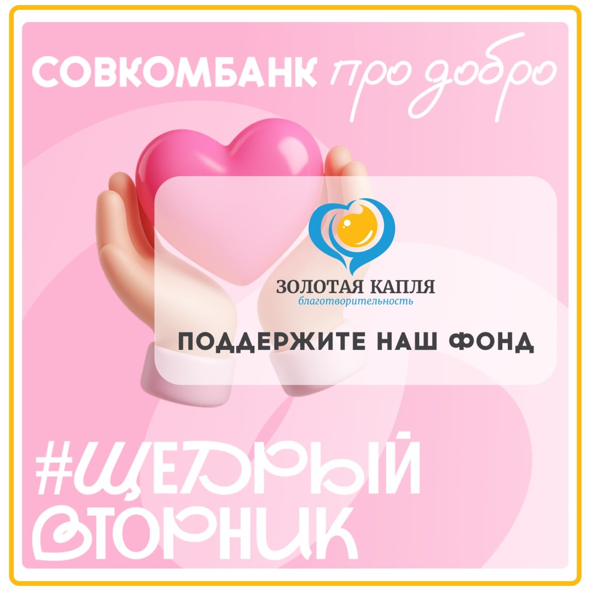 Сегодня платформа «Совкомбанк про добро» @sovcombank_prodobro присоединяется к глобальной акции #ЩедрыйВторник и подарит 5 фондам по 1 миллиону рублей. Наш фонд тоже может получить эти средства, поэтому просим вас поддержать нас и проголосовать за «Золотую каплю»! Поддержите наш фонд прямо сейчас! - Проголосуйте за наш фонд: - Перейдите на https://prodobro.ru/voting - Авторизуйтесь или зарегистрируйтесь – это просто по номеру телефона. - Найдите наш фонд и нажмите «Голосовать». - Укажите, сколько добробаллов хотите отдать. - Чем больше голосов – тем выше наши шансы выиграть 1 млн рублей! Принять участие может каждый — не только клиенты банка. Сегодня Совкомбанк подарит фонду победителю 1 миллион рублей. Подробнее: https://prodobro.ru/articles/v-shedryj-vtornik-uvelichim-pozhertvovaniya-v-5-raz Присоединяйтесь к #ЩедромуВторнику!