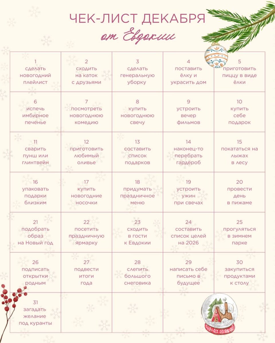 В поисках новогоднего настроения 🚘 Подготовили для вас список дел, которые нужно успеть сделать до Нового года: от простых задач до запоминающихся моментов с близкими. Мы верим в маленькие радости, которые делают большой праздник. Пусть этот Новый год будет особенным💫