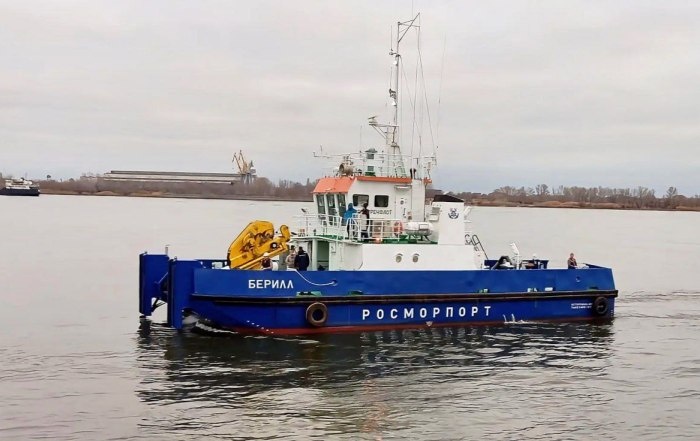 Оно предназначено для комплексного сопровождения земснарядов. Многоцелевое судно обеспечения «Берилл», построенное астраханской фирмой «Стройлидерплюс», ошвартовалось в морском порту Астрахань и уже в декабре приступит к выполнению задач на Волго-Каспийском морском судоходном канале (ВКМСК). Судно проекта FPW1 предназначено для комплексного сопровождения несамоходных земснарядов. В его задачи входит буксировка, снабжение топливом и водой, а также вспомогательные работы при дноуглублении. Кроме того, оснащение новой мотозавозни кранами грузоподъемностью 25 тонн обеспечивает эффективную работу с буями и якорями, транспортировку груза и персонала. Ледовый класс Ice1 позволяет эксплуатировать «Берилл» круглогодично. Как сообщает ФГУП «Росморпорт», всего в рамках проекта FPW1 «Стройлидерплюс» построит три таких судна. Фото: ФГУП «Росморпорт»