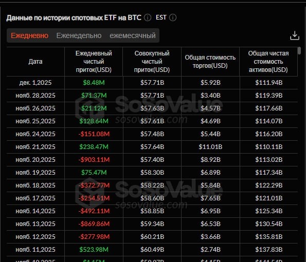 πΈ1 Π΄Π΅ΠΊΠ°Π±ΡΡ ΡΠΏΠΎΡΠΎΠ²ΡΠ΅ Π±ΠΈΡΠΊΠΎΠΈΠ½-ETF ΠΏΠΎΠ»ΡΡΠΈΠ»ΠΈ ΠΎΠ±ΡΠΈΠΉ ΡΠΈΡΡΡΠΉ ΠΏΡΠΈΡΠΎΠΊ Π² $8,48 ΠΌΠ»Π½. Π‘ΠΏΠΎΡΠΎΠ²ΡΠ΅ ETF Π½Π° ΡΡΠΈΡΠΈΡΠΌ Π·Π°ΡΠΈΠΊΡΠΈΡΠΎΠ²Π°Π»ΠΈ ΡΠΈΡΡΡΠΉ ΠΎΡΡΠΎΠΊ Π² $79,06 ΠΌΠ»Π½, Π·Π°Π²Π΅ΡΡΠΈΠ² ΠΏΡΡΠΈΠ΄Π½Π΅Π²Π½ΡΡ ΡΠ΅ΡΠΈΡ ΠΏΡΠΈΡΠΎΠΊΠΎΠ². Π‘ΠΏΠΎΡΠΎΠ²ΡΠ΅ ETF Π½Π° XRP ΠΏΠΎΠΊΠ°Π·Π°Π»ΠΈ ΡΠΈΡΡΡΠΉ ΠΏΡΠΈΡΠΎΠΊ Π² $89,65 ΠΌΠ»Π½, Π° ΡΠΏΠΎΡΠΎΠ²ΡΠ΅ ETF ΠΏΠΎ Π‘ΠΎΠ»Π°Π½Π΅ Π½Π°Π±Π»ΡΠ΄Π°Π»ΠΈ ΡΠΈΡΡΡΠΉ ΠΎΡΡΠΎΠΊ Π² $13,55 ΠΌΠ»Π½.