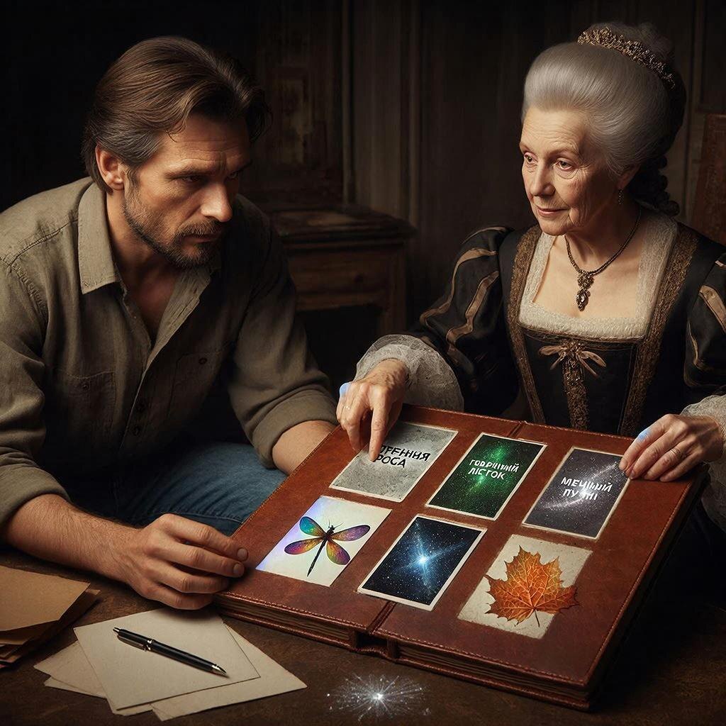 Елизавета Петровна не спеша открыла тяжелый альбом.Внутри лежали не обычные марки с гербами и видами городов. Они были… другие. Одна переливалась, как крыло стрекозы, другая была похожа на кусочек ночного неба, третья будто соткана из осенней паутины.