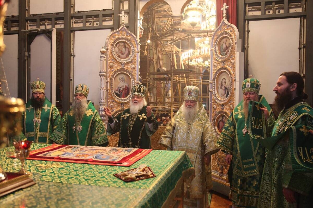 Архипастыри совершили Божественную литургию и чин молебного пения в соборе Сретения Владимирской иконы