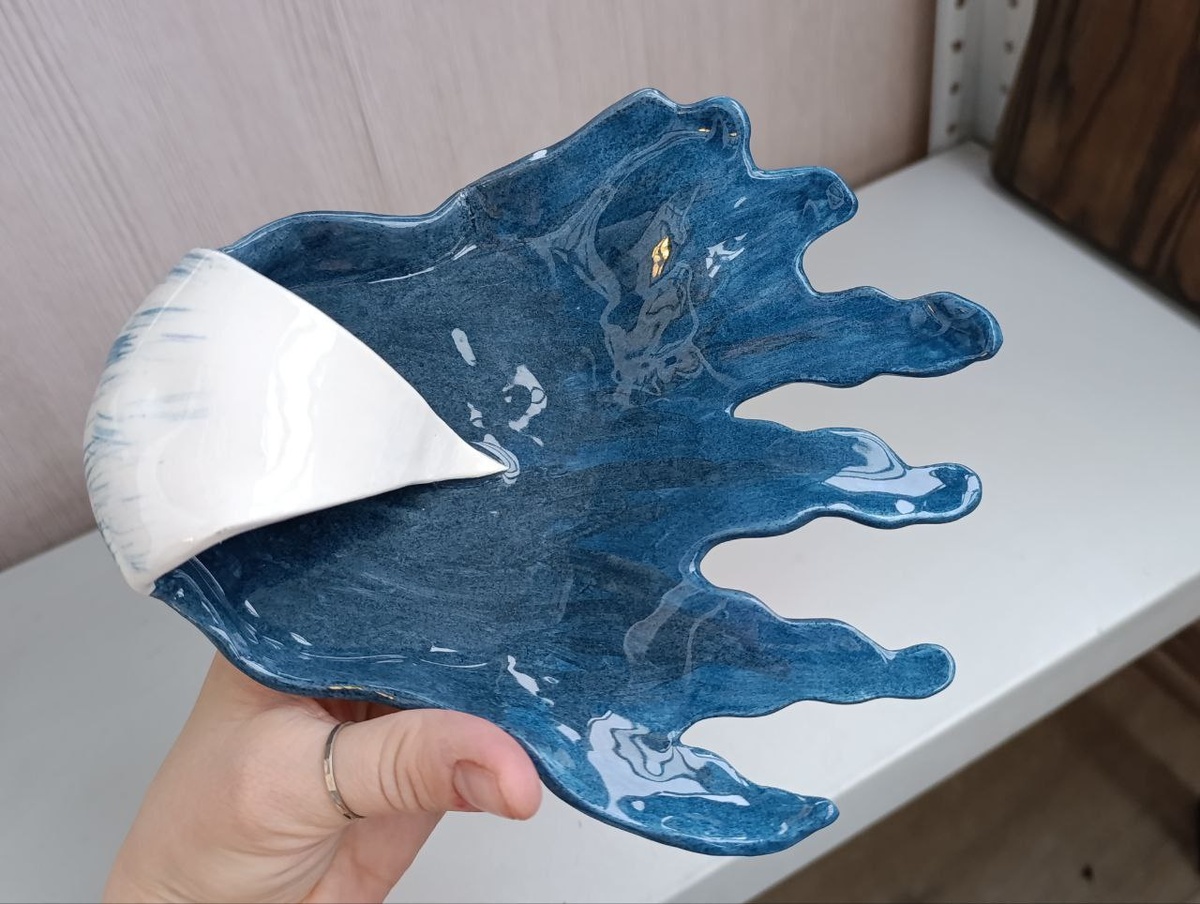 В ответ на пост Боль утраты. Это символическое изображение человека переживающего травматический опыт. Сознание летящее по жизненному пути как тёмная комета мрачных мыслей оставляющая за собой рваные клочки. И раскаленное белое остриё травмирующего опыта загнутое в себя самого и жалащее самого себя. И именно от этого жала расходятся клубы депрессивного фона. В синей глазури вышло конечно немного похоже на морскую волну) 🌊