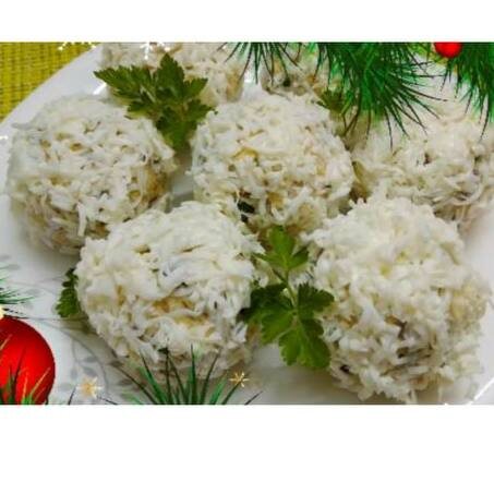 Закуска «Снежок» — это всегда эффектно, вкусно и по-новогоднему. Это не один конкретный рецепт, а целая концепция: нежная основа в форме шарика, обваленная в мелкой тёрке белка (сыр, яйцо, кабачок), имитирующая снежок. Вот три проверенных варианта, от классического до более оригинального. Общий принцип для всех вариантов: Основа — смесь, которую можно слепить в шарики или придать форму горки. Внешний слой — что-то белое и сухое: тёртый яичный белок, твёрдый сыр, лук порей (белая часть), кокосовая стружка (для сладких вариантов), мелко тёртый отварной картофель или кабачок. Вариант 1: Классический «Крабовый снежок» (Самый простой и популярный) Ингредиенты: · Крабовые палочки (сурими) — 200 г · Плавленый сыр («Дружба», «Хохланд» для тостов) — 200 г · Чеснок — 1-2 зубчика (по вкусу) · Укроп или петрушка — небольшой пучок · Майонез — 2-3 ст.л. (для связки) · Для обсыпки: Твёрдый сыр (типа «Российского») или яичные белки (2-3 шт., сваренных вкрутую). Приготовление: 1. Крабовые пало