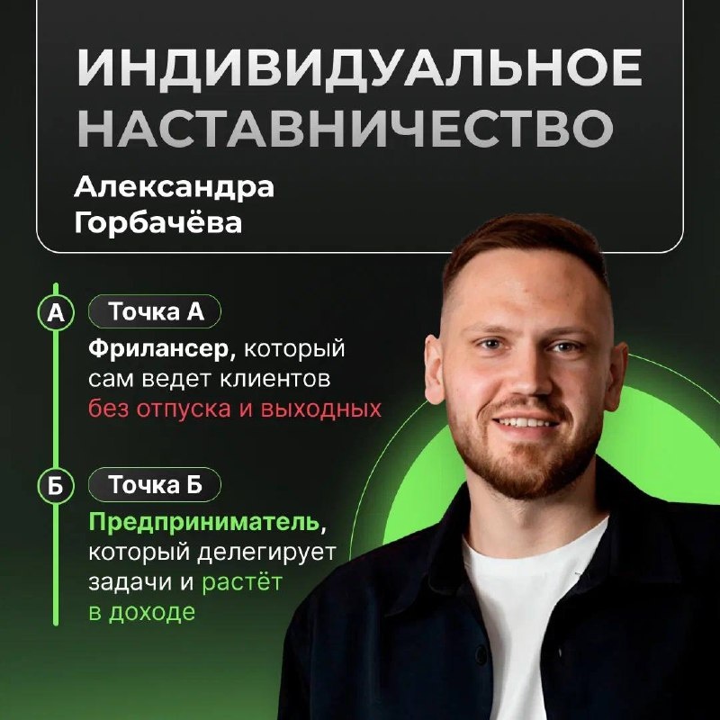 Индивидуальное наставничество Александра Горбачёва 😎 Доброе утро, коллеги. Делюсь отличной новостью для Авитологов, которые устали набивать шишки и учиться на ошибках самостоятельно👇 Уже во второй раз, я запускаю индивидуальное наставничество по созданию и развитию рекламного агентства. Кому подойдет данная программа: - авитологам, которые имеют стабильный доход, но ещё не делегируют задачи - собственникам агентств, которым не хватает опытного наставника - всем, кто хочет выстроить стабильную рабочую систему и выйти на новый уровень дохода Наставник нужен не потому, что он умнее или лучше вас. Просто он уже проходил эту игру и знает некоторые «читы»😎 Что входит в моё наставничество: ✔️ Доступ ко всей базе данных РА Море трафика: рабочие таблицы, регламенты и т.д. ✔️ курс «Я - Авитолог ПРО» ✔️ курс «Я - Авитолог» для сотрудников ✔️ курс «Контент-менеджер» для сотрудников ✔️ индивидуальные разборы со мной раз в неделю Специально для Авитологов, которые хотят пробить потолок