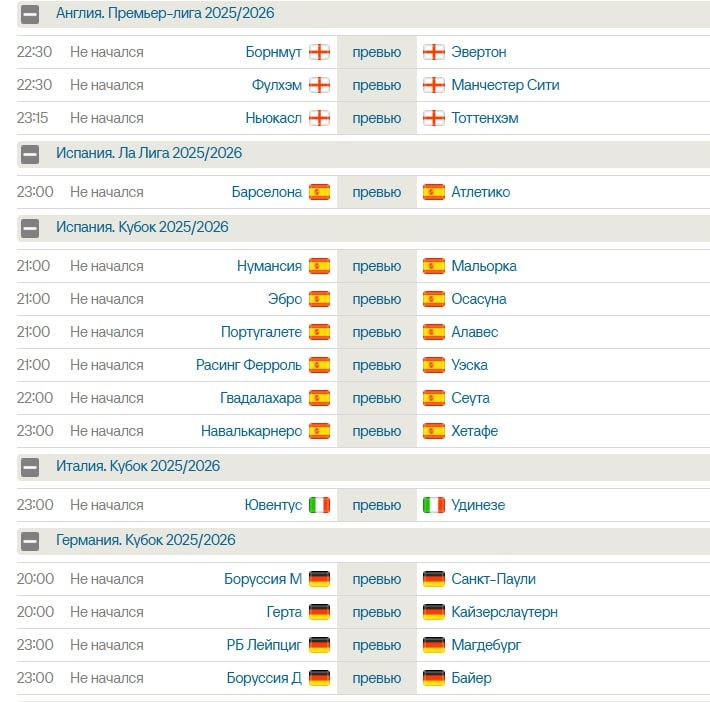 Матчи на сегодня