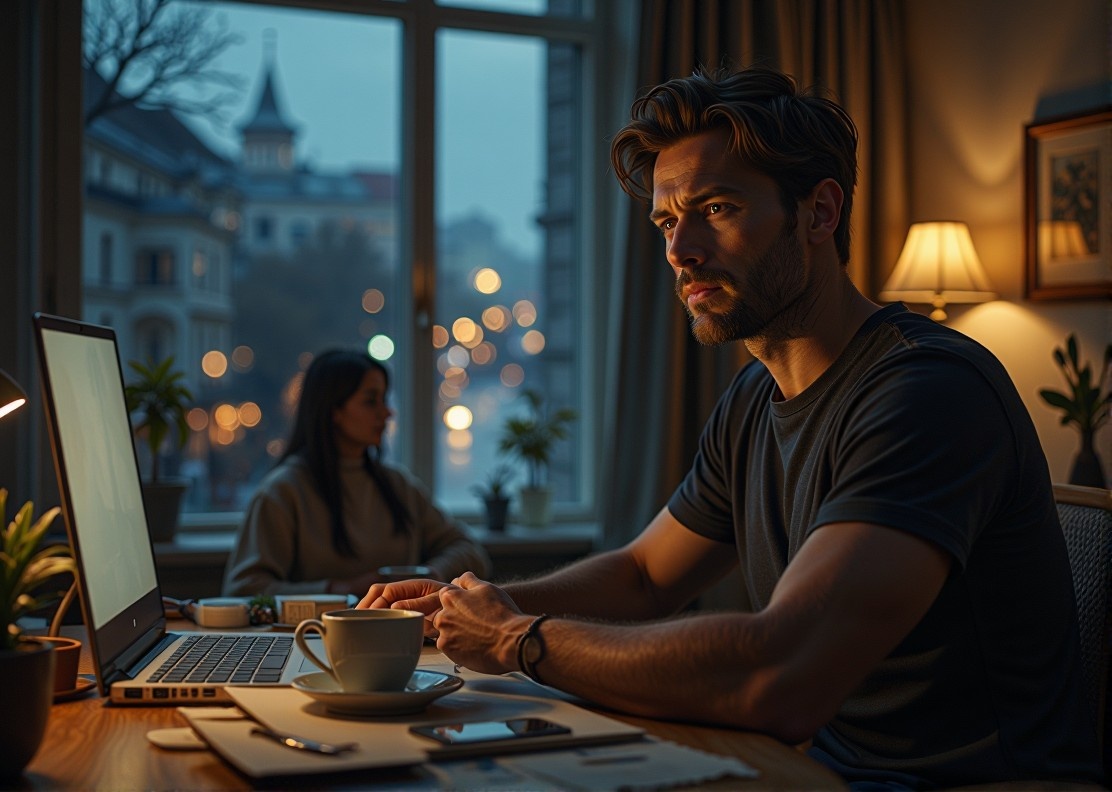 Кофе остыл минут двадцать назад, но Артём всё равно поднёс кружку к губам, будто проверяя, не изменилось ли что-то за это время. На подоконнике таял тонкий след от его сигареты, окна дрожали от редких порывов ветра, а в ноутбуке мигало зелёное окошко мессенджера.