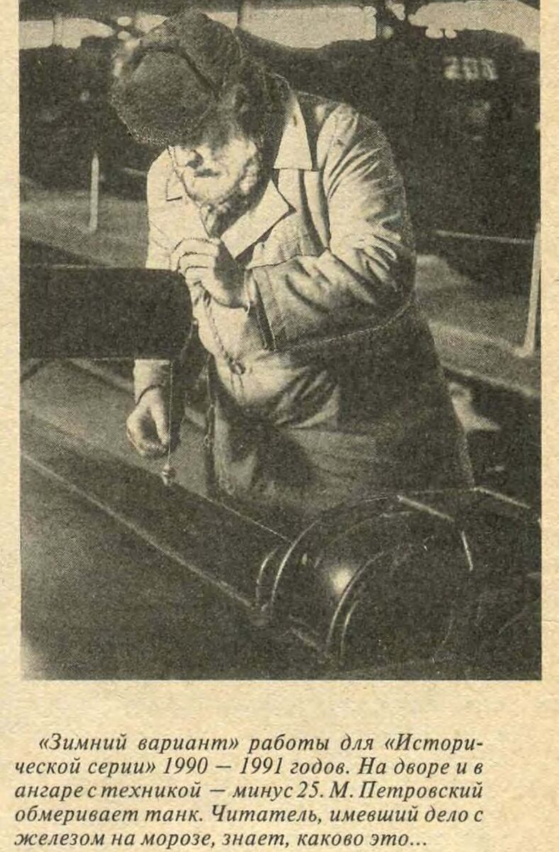 ..В последний день своей жизни Петровский приехал в редакцию, чтобы еще раз уточнить наши планы. Они были обширными — только что завершили подготовку к печати второго выпуска «Энциклопедии техники», посвященного винтовкам и автоматам, обсуждались детали макета выпуска третьего — о бронетанковой технике. Намечались поездки в Монинский музей авиации и Музей истории Москвы» чтобы собрать иллюстрированный материал для публикаций об их нынешнем бедственном состоянии.