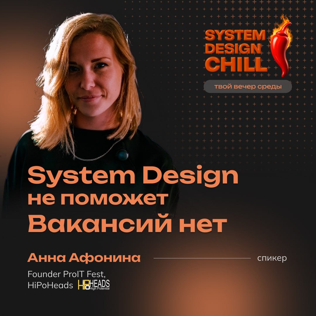 🔤 System Design не поможет. Вакансий нет • Вы готовитесь к System Design Interview, но все никак не можете попасть на собеседование? • Шансы на отклик в 2025 падают почти до нуля, и старый привычный hh уже не работает( • На встрече расскажу, что происходит с рынком труда, когда все это кончится, и как нынче искать работу. • Раскрывает тему Анна Афонина — Founder ProIT Fest, HiPoHeads 🌶 System Design Chill в среду в 19:00 ❗️ Будет горячо! 😎
