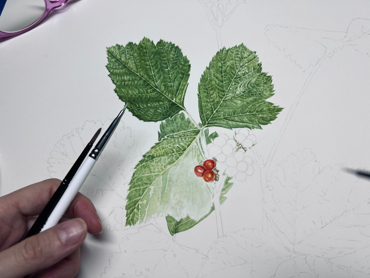 Маскирующая жидкость нужна не для каждой работы. Иногда проще аккуратнее писать, просто обойти «белый» участок. Но в ботанической живописи, где много мелких деталей, это настоящая палочка-выручалочка. Маскировочная жидкость. Что это? Это такая штука, похожая на жидкую резинку. Немного резковато пахнет, да. Смысл её простой: ты наносишь её на те места на бумаге, которые должны остаться чистыми, белыми. Ну, например, тончайшие прожилки на листе или маленькие блики на ягоде. Она высыхает и превращается в упругую плёночку. И вот поверх этой плёночки ты уже можешь смело писать фон, заливать цвет — под неё ничего не просочится. Потом плёночку снимаешь, а под ней — идеально белая бумага. Что в ней хорошего? Очень экономит время и нервы. Намазал, подождал, пока высохнет, и работаешь дальше легко. И сохраняет белизну бумаги лучше всего. Ведь самый яркий белый в акварели — это не краска, а нетронутая бумага. А что не так? Она портит кисти. Практически безвозвратно. Если нанести её хорошей кис