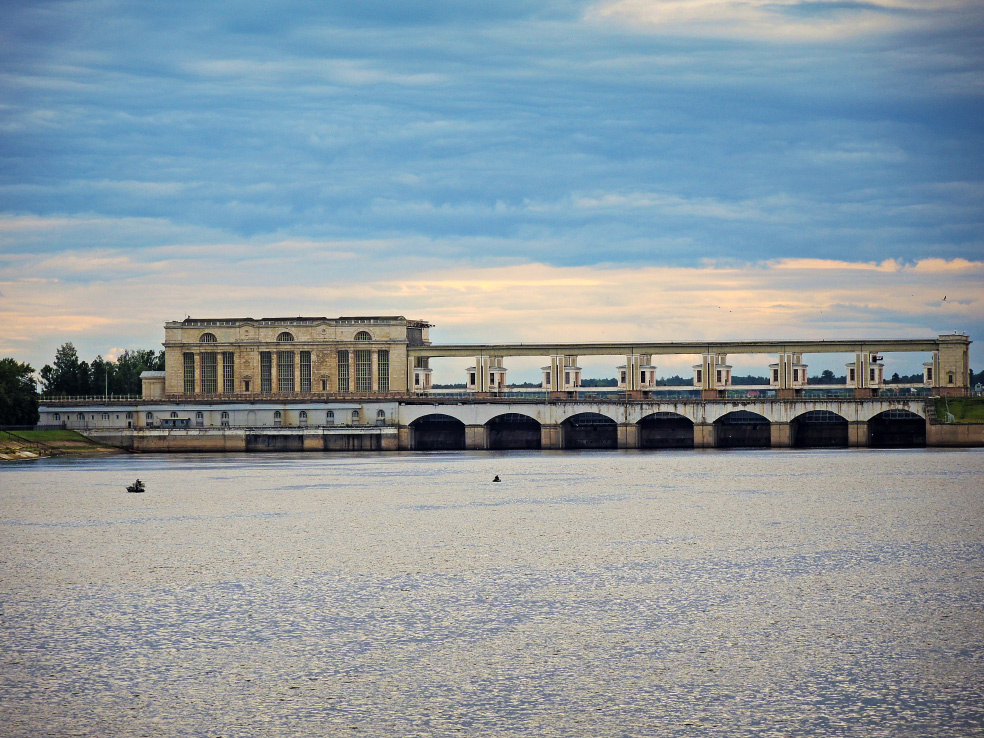Продолжение рассказа о большом путешествии по Волге в июле 2015 года. Все материалы можно найти в подборке по ссылке в конце статьи. Завершилась наша стоянка в Угличе, мы отправляемся дальше. Движемся мы вверх по Волге. А значит, нам нужно пройти шлюз Угличской ГЭС. Угличская ГЭС - одна из старейших в России и бывшем СССР. Свою работу она начала в конце 1940 года, на полную мощность вышла весной 1941. На тот момент она стала второй по мощности в СССР. Сыграла большую роль в обеспечении электричеством Москвы в годы Великой Отечественной войны. Также в комплексе с Рыбинской ГЭС обеспечила необходимый подъём уровня воды в Волге для функционирования канала имени Москвы, который соединил реки Волгу и Москву. Шлюз Угличской ГЭС расположен вдоль левого берега Волги. Он однокамерный, однониточный. Это означает, что все суда проходят через одну и ту же камеру независимо от направления движения. Разница уровня воды здесь составляет 12 метров. Шлюз имеет две особенности. Во-первых, ворота,