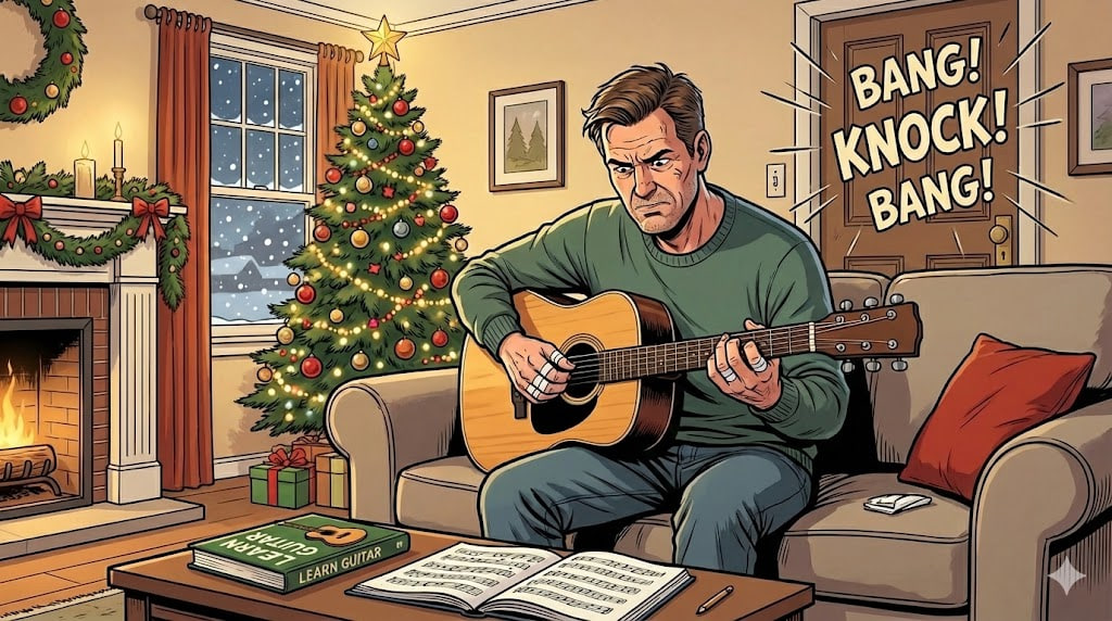 I bought a guitar a week ago. My fingers already hurt, and I’m still not playing very well. I practice every evening after work. My neighbors aren’t happy, but I’m not going to give up!