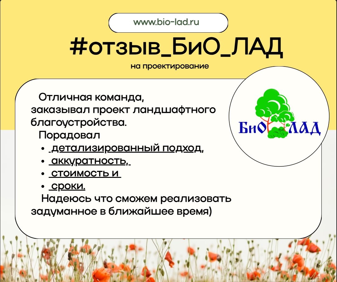 🍀 Благодарим за доверие и высокую оценку наших дорогих Заказчиков! Для нас «детализированный подход» — это не просто пункт в договоре. Ждём с нетерпением этапа реализации — вместе превратим чертежи в живое пространство, которое будет радовать долгие годы. А всем, кто хотел ландшафтный проект своего участка, сообщаем, что погода все еще на Вашей (и нашей) стороне! Не упускаем безснежный момент 😎 #Отзыв_БиО_ЛАД