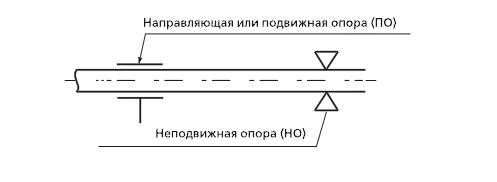 Для трубопроводов из полимерных материалов применяются подвижные опоры (ПО), допускающие перемещение труб в осевом направлении, и неподвижные опоры (НО), не допускающие таких перемещений.