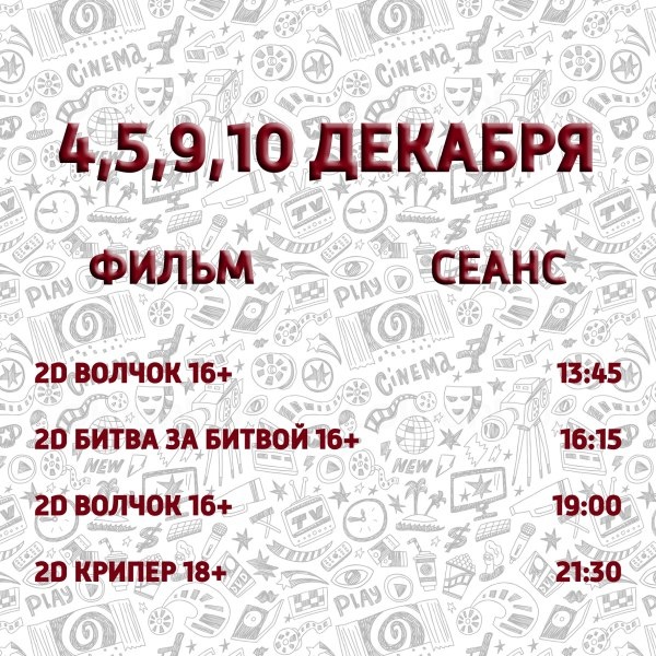 РЕПЕРТУАР НА 4 — 10 ДЕКАБРЯ На фильм: «»Гарри Поттер и Кубок огня» брони и онлайн продажи нет, билет без указания места. Стоимость билета — 300 рублей https://premierzal.ru/theatre/yashma/schedule Телефон для бронирования: 8 965 941 58 49 Бронь автоматически снимается за 20 минут до начала сеанса Касса кинотеатра открывается за 20 минут до начала первого сеанса и закрывается через 20 минут после начала последнего сеанса vk519323535 December 2, 2025, 06:14 А когда фнаф 2 Источник https://uchaly102.ru/?p=113786