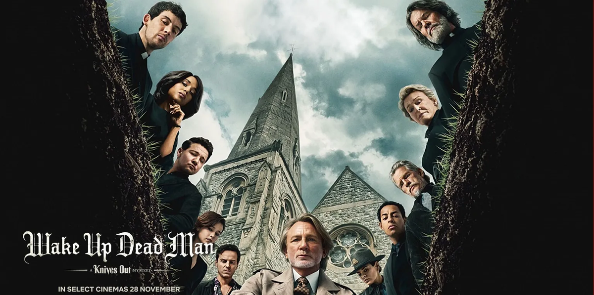 Новая часть детективной франшизы Райана Джонсона о сыщике Бенуа Бланке вышла в ограниченный кинопрокат США 26 ноября 2025 года, а 12 декабря станет доступна на стриминговом сервисе Netflix. Критики встретили фильм с восторгом — на Rotten Tomatoes картина получила 95% положительных рецензий от критиков, а на премьере в Торонто стартовала с идеальным результатом 100%. На Metacritic фильм набрал 80 баллов из 100 на основе отзывов профессиональных рецензентов. Сюжет фильма Действие разворачивается в вымышленном маленьком городке штата Нью-Йорк, в католическом приходе «Богоматерь Постоянной Стойкости». Молодой священник отец Джад Дюплентиси (Джош О'Коннор) — бывший боксёр, который обратился к вере после того, как убил человека на ринге, — направляется помощником к деспотичному настоятелю монсеньору Джефферсону Уиксу (Джош Бролин). Уикс проповедует страх, а не прощение, и манипулирует своей паствой, используя пропавший крест как символ их грехов. В Страстную пятницу Уикс внезапно умирает