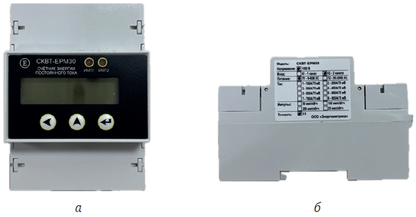 Рис. 1. Внешний вид счетчика серии СКВТ-EPM30: а – передняя панель; б – вид сбоку